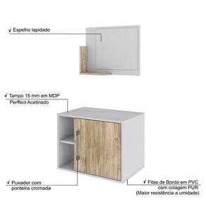 O Conjunto Balcão e Espelheira Soft 600 GESF600 tem design compacto, perfeito para pequenos espaços, conta com uma prateleira lateral e uma cuba de apoio, além da espelheira.