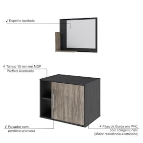 O Conjunto Balcão e Espelheira Soft 600 GESF600 tem design compacto, perfeito para pequenos espaços, conta com uma prateleira lateral e uma cuba de apoio, além da espelheira.
