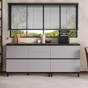 em MDF 1,5cm, ela oferece um acabamento de alto padrão e durabilidade excepcional. O design moderno inclui puxadores embutidos que conferem um visual impecável, portas chanfradas que adicionam um toque de requinte, e gavetões espaçosos que facilitam a organização dos utensílios. Tampo de 2,5 cm resistente a altas temperaturas, até 120ºC. Corrediças telescópicas de 3 estágios. Dobradiças com tecnologia Slow Motion e para as portas horizontais pistão a gás para abrir suavemente. Altura do Conjunto: 90 cm Ambiente Principal: Cozinha codigo_ean: 7900288289711 Cor: Grafite/Cinza Cor do Produto: Grafite/Cinza Informação Complementar: 1x Balcão Cozinha 1 Porta 4 Gavetas 120cm com Tampo 100% MDF Lúmina Grafite/Cinza Largura: 120 cm Altura: 90 cm Peso: 57 kg Profundidade: 53 cm Necessita Montagem: Sim