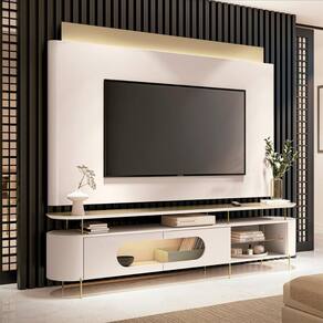 Perfeito para TVs de até 85", oferece amplo espaço para objetos decorativos e eletrônicos.