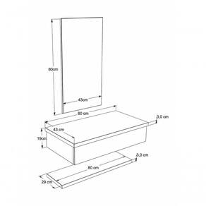 Sobre o ProdutoConjunto Bancada C/Cuba F44, Prateleira e Espelheira Metrópole 806 Branco ChessDescrição do Produto:O Conjunto (Bancada + Cuba + Espelheira + Prateleira) Metrópole KTME806 é um produto compacto de design simples e moderno, projetado para pequenos espaços, perfeito para fazer parte da decoração do seu lavabo ou banheiro. Conta com uma cuba de apoio, uma espelheira e prateleira com pinos invisíveis, além do suporte linha Metrópole é uma coleção de móveis modernos e com inúmeras possibilidades de composições, combinando design contemporâneo e muita funcionalidade. Diversas possibilidades de cores e modelos de cubas formam uma solução perfeita para as mais opções de decoração e projetos em ambientes de banheiro. É você quem decide!!!Itens Inclusos:1 Conjunto Bancada C/Cuba, Prateleira e EspelheiraDimensões dos Produtos:Bancada: 80 x 43 x 19 cmEspelheira: 43 x 1,8 x 80 cmCuba 43,5 x 36 x 12 cmInformações Logísticas (Comp. X Prof. X Alt.) 83 x 47 x 26 cm - Peso: 23,1 KgPeso Total: 23,1 KgObservações:Não acompanha acessórios decorativos. Imagens meramente ilustrativas.Informações Técnicas / Características:- Cor do Produto: Branco Chess- Cor do Predominante: Branco- Marca: Compace- Modelo: KTME806- Linha: Metrópole- Material: Mdp - Acabamento: Perffect Acetinado- Escala de Brilho: Fosco- Fita de Borda: Pvc - Possui Gavetas: Não - Material do Puxador: Alumínio- Possui Prateleiras: 1- Peso Máximo por Prateleira: 02 kg- Possui Pés: Não, suspenso - Possui Espelho: Sim - Acompanha Cuba / Lavatório: Sim, de Mármore Sintético- Furação para Cuba / Lavatório: Não- Tipo da Cuba: Apoio- Cor da Cuba: Branca- Suporta Até (kg): 12 kg - Peso Lí.: 22,03Kg- Recomendações de Uso, Manutenção e Limpeza: Para a limpeza, utilize flanela seca ou pano macio levemente umedecido em água. Utilize um pano seco em seguida. Evite com produtos químicos (solventes, thinner, acetona, etc) e não utilize nenhum tipo de esponja de aço.- Necessita de Montagem: Sim / Acompanha Manual de Montagem- Complexidade da Montagem: Média: pode ser montado por mais de uma pessoa e/ou necessite de maior conhecimento para montagem.- Garantia: 6 meses- Outras Características: Montagem ível, o suporte toalheiro pode ser montado em qualquer um dos lados. Material: Mdp | Acabamento: Perffect Acetinado | Escala de Brilho: Fosco | Fita de Borda: Pvc | Tipo de Produto: Bancada para Banheiro | 80: Largura | Limite de unidades por venda: É possível comprar até 1 unidade por venda. | 19: Profundidade | Quantidade máxima de pedido: 1 | 42: Preço tabelado | Cor: Multicolorido | Certificação de teste externa: Não Aplicável | Baterias são necessárias?: false | Palavras-chave de Pesquisa: Não aplicável | Fonte de energia: Não aplicável | Fabricante: Compace | Dimensões do item P x L x A: | Principais Características do Produto 0: | Peso do item: | Principais Características do Produto 1: | Principais Características do Produto 2: | Is Fragile: | Componentes incluídos: | da peça: | Exige montagem: | de caixas: | do modelo: | Quantidade de itens: Cor: Snow