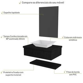 Sobre o ProdutoConjunto Bancada C/Cuba Messina, Prateleira e Espelheira Metrópole 606 Branco ChessDescrição do Produto:O Conjunto (Bancada + Cuba + Espelheira + Prateleira) Metrópole KTME606 é um produto compacto de design simples e moderno, projetado para pequenos espaços, perfeito para fazer parte da decoração do seu lavabo ou banheiro. Conta com uma cuba de apoio, uma espelheira e prateleira com pinos invisíveis, além do suporte linha Metrópole é uma coleção de móveis modernos e com inúmeras possibilidades de composições, combinando design contemporâneo e muita funcionalidade. Diversas possibilidades de cores e modelos de cubas formam uma solução perfeita para as mais opções de decoração e projetos em ambientes de banheiro. É você quem decide!!!Itens Inclusos:1 Conjunto Bancada C/Cuba, Prateleira e EspelheiraDimensões dos Produtos:Bancada: 60 x 43 x 19 cmEspelheira: 43 x 1,8 x 60 cmCuba 44,5 x 35 x 10 cmInformações Logísticas (Comp. X Prof. X Alt.) 63 x 47 x 26 cm - Peso: 20,23 KgPeso Total: 20,23 KgObservações:Não acompanha acessórios decorativos. Imagens meramente ilustrativas.Informações Técnicas / Características:- Cor do Produto: Branco Chess- Cor do Predominante: Branco- Marca: Compace- Modelo: KTME606- Linha: Metrópole- Material: Mdp - Acabamento: Perffect Acetinado- Escala de Brilho: Fosco- Fita de Borda: Pvc - Possui Gavetas: Não - Material do Puxador: Alumínio- Possui Prateleiras: 1- Peso Máximo por Prateleira: 02 kg- Possui Pés: Não, suspenso - Possui Espelho: Sim - Acompanha Cuba / Lavatório: Sim, de Mármore Sintético- Furação para Cuba / Lavatório: Não- Tipo da Cuba: Apoio- Cor da Cuba: Branca- Suporta Até (kg): 12 kg - Peso Lí.: 19,33Kg- Recomendações de Uso, Manutenção e Limpeza: Para a limpeza, utilize flanela seca ou pano macio levemente umedecido em água. Utilize um pano seco em seguida. Evite com produtos químicos (solventes, thinner, acetona, etc) e não utilize nenhum tipo de esponja de aço.- Necessita de Montagem: Sim / Acompanha Manual de Montagem- Complexidade da Montagem: Média: pode ser montado por mais de uma pessoa e/ou necessite de maior conhecimento para montagem.- Garantia: 6 meses- Outras Características: Montagem ível, o suporte toalheiro pode ser montado em qualquer um dos lados. Material: Mdp | Acabamento: Perffect Acetinado | Escala de Brilho: Fosco | Fita de Borda: Pvc | Tipo de Produto: Bancada para Banheiro | Fabricante: Compace | Comprimento: 60 | Limite de unidades por venda: É possível comprar até 1 unidade por venda. | Largura: 42 | Quantidade máxima de pedido: 1 | Altura: 19 | Profundidade: 42 | Preço tabelado: | Cor: Multicolorido | Certificação de teste externa: Não Aplicável | Baterias são necessárias?: false | Palavras-chave de Pesquisa: Não aplicável | Fonte de energia: Não aplicável | da peça: | Peso do item: | Principais Características do Produto 2: | Componentes incluídos: | Exige montagem: | Principais Características do Produto 1: | Principais Características do Produto 0: | Is Fragile: | Dimensões do item P x L x A: | do modelo: | Quantidade de itens: | de caixas: Cor: Preto Ônix