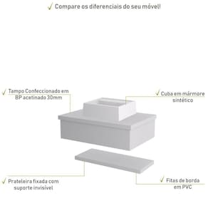 Conjunto Bancada C/cuba Q32 E Prateleira Metrópole 605 Perffect Acetinado Branco Chess Sobre o ProdutoConjunto Bancada C/Cuba Q32 e Prateleira Metrópole 605 Branco ChessDescrição do Produto:O Conjunto (Bancada + Cuba + Prateleira) Metrópole KTME605 é um produto compacto de design simples e moderno, projetado para pequenos espaços, perfeito para fazer parte da decoração do seu lavabo ou banheiro. Conta com uma cuba de apoio e uma prateleira com pinos invisíveis, além do suporte linha Metrópole é uma coleção de móveis modernos e com inúmeras possibilidades de composições, combinando design contemporâneo e muita funcionalidade. Diversas possibilidades de cores e modelos de cubas formam uma solução perfeita para as mais opções de decoração e projetos em ambientes de banheiro. É você quem decide!!!Itens Inclusos:1 Conjunto Bancada C/Cuba e PrateleiraDimensões dos Produtos:Bancada: 60 x 43 x 19 cmCuba 33 x 30 x 10 cmInformações Logísticas (Comp. X Prof. X Alt.) 63 x 47 x 26 cm - Peso: 15,08 KgPeso Total: 15,08 KgObservações:Não acompanha acessórios decorativos. Imagens meramente ilustrativas.Informações Técnicas / Características:- Cor do Produto: Branco Chess- Cor do Predominante: Branco- Marca: Compace- Modelo: KTME605- Linha: Metrópole- Material: Mdp - Acabamento: Perffect Acetinado- Escala de Brilho: Fosco- Fita de Borda: Pvc - Possui Gavetas: Não - Material do Puxador: Alumínio- Possui Prateleiras: 1- Peso Máximo por Prateleira: 02 kg- Possui Pés: Não, suspenso - Possui Espelho: Não - Acompanha Cuba / Lavatório: Sim, de Mármore Sintético- Furação para Cuba / Lavatório: Não- Tipo da Cuba: Apoio- Cor da Cuba: Branca- Suporta Até (kg): 12 kg - Peso Lí.: 14,18Kg- Recomendações de Uso, Manutenção e Limpeza: Para a limpeza, utilize flanela seca ou pano macio levemente umedecido em água. Utilize um pano seco em seguida. Evite com produtos químicos (solventes, thinner, acetona, etc) e não utilize nenhum tipo de esponja de aço.- Necessita de Montagem: Sim / Acompanha Manual de Montagem- Complexidade da Montagem: Média: pode ser montado por mais de uma pessoa e/ou necessite de maior conhecimento para montagem.- Garantia: 6 meses- Outras Características: Montagem ível, o suporte toalheiro pode ser montado em qualquer um dos lados. Material: Mdp | Acabamento: Perffect Acetinado | Escala de Brilho: Fosco | Fita de Borda: Pvc | Tipo de Produto: Bancada para Banheiro | Fabricante: Compace | Comprimento: 60 | Largura: 42 | Limite de unidades por venda: É possível comprar até 1 unidade por venda. | Altura: 19 | Quantidade máxima de pedido: 1 | Profundidade: 42 | Preço tabelado: 259 | Cor: Multicolorido | Certificação de teste externa: Não Aplicável | Baterias são necessárias?: false | Palavras-chave de Pesquisa: Não aplicável | Fonte de energia: Não aplicável | Peso do item: | Dimensões do item P x L x A: | Is Fragile: | Principais Características do Produto 0: | Principais Características do Produto 1: | Componentes incluídos: | Principais Características do Produto 2: | Exige montagem: | da peça: | Quantidade de itens: | de caixas: | do modelo: Cor: Branco Chess