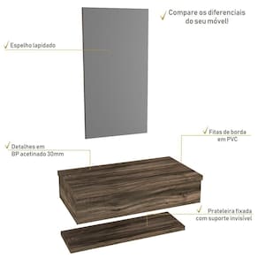 Sobre o ProdutoConjunto Bancada, Prateleira e Espelheira KTME807 Branco ChessDescrição do Produto:O Conjunto (Bancada + Espelheira + Prateleira) Metrópole KTME807 é um produto compacto de design simples e moderno, projetado para pequenos espaços, perfeito para fazer parte da decoração do seu lavabo ou banheiro. Conta uma espelheira e prateleira com pinos invisíveis, além do suporte linha Metrópole é uma coleção de móveis modernos e com inúmeras possibilidades de composições, combinando design contemporâneo e muita funcionalidade. Diversas possibilidades de cores e modelos de cubas formam uma solução perfeita para as mais opções de decoração e projetos em ambientes de banheiro. É você quem decide!!!Itens Inclusos:1 Conjunto Bancada, Prateleira e EspelheiraDimensões dos Produtos:Bancada: 80 x 43 x 19 cmEspelheira: 43 x 1,8 x 80 cm: Informações Logísticas (Comp. X Prof. X Alt.) 83 x 47 x 26 cm - Peso: 19,11 KgPeso Total: 19,11 KgObservações:Não acompanha acessórios decorativos. Imagens meramente ilustrativas.Informações Técnicas / Características:- Cor do Produto: Branco Chess- Cor do Predominante: Branco- Marca: Compace- Modelo: KTME807- Linha: Metrópole- Material: Mdp - Acabamento: Perffect Acetinado- Escala de Brilho: Fosco- Fita de Borda: Pvc - Possui Gavetas: Não - Material do Puxador: Alumínio- Possui Prateleiras: 1- Peso Máximo por Prateleira: 02 kg- Possui Pés: Não, suspenso - Possui Espelho: Sim - Acompanha Cuba / Lavatório: Não- Furação para Cuba / Lavatório: Não - Suporta Até (kg): 12 kg - Peso Lí.: 18,04Kg- Recomendações de Uso, Manutenção e Limpeza: Para a limpeza, utilize flanela seca ou pano macio levemente umedecido em água. Utilize um pano seco em seguida. Evite com produtos químicos (solventes, thinner, acetona, etc) e não utilize nenhum tipo de esponja de aço.- Necessita de Montagem: Sim / Acompanha Manual de Montagem- Complexidade da Montagem: Média: pode ser montado por mais de uma pessoa e/ou necessite de maior conhecimento para montagem.- Garantia: 6 meses- Outras Características: Montagem ível, o suporte toalheiro pode ser montado em qualquer um dos lados. Material: Mdp | Acabamento: Perffect Acetinado | Escala de Brilho: Fosco | Fita de Borda: Pvc | Tipo de Produto: Bancada para Banheiro | Fabricante: Compace | Comprimento: 80 | Largura: 42 | Limite de unidades por venda: É possível comprar até 1 unidade por venda. | Quantidade máxima de pedido: 1 | Altura: 19 | Profundidade: 42 | Preço tabelado: | Cor: Multicolorido | Certificação de teste externa: Não Aplicável | Baterias são necessárias?: false | Palavras-chave de Pesquisa: Não aplicável | Fonte de energia: Não aplicável | Peso do item: | Principais Características do Produto 1: | Principais Características do Produto 0: | Dimensões do item P x L x A: | Is Fragile: | Exige montagem: | Componentes incluídos: | Principais Características do Produto 2: | da peça: | de caixas: | Quantidade de itens: | do modelo: Cor: Carvalho Dark