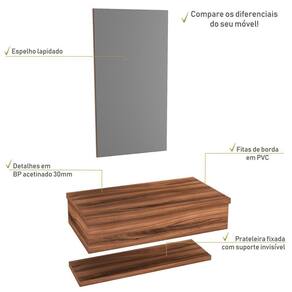 Sobre o ProdutoConjunto Bancada, Prateleira e Espelheira KTME807 Branco ChessDescrição do Produto:O Conjunto (Bancada + Espelheira + Prateleira) Metrópole KTME807 é um produto compacto de design simples e moderno, projetado para pequenos espaços, perfeito para fazer parte da decoração do seu lavabo ou banheiro. Conta uma espelheira e prateleira com pinos invisíveis, além do suporte linha Metrópole é uma coleção de móveis modernos e com inúmeras possibilidades de composições, combinando design contemporâneo e muita funcionalidade. Diversas possibilidades de cores e modelos de cubas formam uma solução perfeita para as mais opções de decoração e projetos em ambientes de banheiro. É você quem decide!!!Itens Inclusos:1 Conjunto Bancada, Prateleira e EspelheiraDimensões dos Produtos:Bancada: 80 x 43 x 19 cmEspelheira: 43 x 1,8 x 80 cm: Informações Logísticas (Comp. X Prof. X Alt.) 83 x 47 x 26 cm - Peso: 19,11 KgPeso Total: 19,11 KgObservações:Não acompanha acessórios decorativos. Imagens meramente ilustrativas.Informações Técnicas / Características:- Cor do Produto: Branco Chess- Cor do Predominante: Branco- Marca: Compace- Modelo: KTME807- Linha: Metrópole- Material: Mdp - Acabamento: Perffect Acetinado- Escala de Brilho: Fosco- Fita de Borda: Pvc - Possui Gavetas: Não - Material do Puxador: Alumínio- Possui Prateleiras: 1- Peso Máximo por Prateleira: 02 kg- Possui Pés: Não, suspenso - Possui Espelho: Sim - Acompanha Cuba / Lavatório: Não- Furação para Cuba / Lavatório: Não - Suporta Até (kg): 12 kg - Peso Lí.: 18,04Kg- Recomendações de Uso, Manutenção e Limpeza: Para a limpeza, utilize flanela seca ou pano macio levemente umedecido em água. Utilize um pano seco em seguida. Evite com produtos químicos (solventes, thinner, acetona, etc) e não utilize nenhum tipo de esponja de aço.- Necessita de Montagem: Sim / Acompanha Manual de Montagem- Complexidade da Montagem: Média: pode ser montado por mais de uma pessoa e/ou necessite de maior conhecimento para montagem.- Garantia: 6 meses- Outras Características: Montagem ível, o suporte toalheiro pode ser montado em qualquer um dos lados. Material: Mdp | Acabamento: Perffect Acetinado | Escala de Brilho: Fosco | Fita de Borda: Pvc | Tipo de Produto: Bancada para Banheiro | Fabricante: Compace | Comprimento: 80 | Largura: 42 | Limite de unidades por venda: É possível comprar até 1 unidade por venda. | Quantidade máxima de pedido: 1 | Altura: 19 | Profundidade: 42 | Preço tabelado: | Cor: Multicolorido | Certificação de teste externa: Não Aplicável | Baterias são necessárias?: false | Palavras-chave de Pesquisa: Não aplicável | Fonte de energia: Não aplicável | Peso do item: | Principais Características do Produto 1: | Principais Características do Produto 0: | Dimensões do item P x L x A: | Is Fragile: | Exige montagem: | Componentes incluídos: | Principais Características do Produto 2: | da peça: | de caixas: | Quantidade de itens: | do modelo: Cor: Nogal