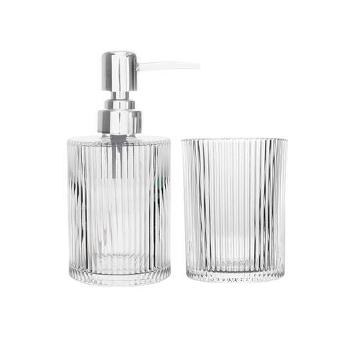 Composto por uma Porta-sabonete líquido e um porta-escovas, é ideal para manter os itens de higiene sempre à mão e bem-organizados.