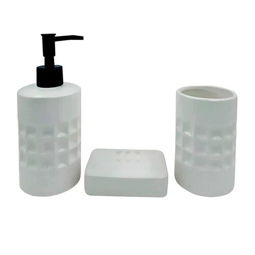 Conjunto Para Banheiro 3 Peças Bancada Pia Organização Modelo:Pequim;Cor:Branco Kit Banheiro 3 Peças Pia Malta : Organização e Estilo para Seu Banheiro Transforme seu banheiro em um espaço de elegância e funcionalidade com o nosso Kit Banheiro 3 Peças Pia Malta . Este conjunto foi cuidadosamente projetado para atender às suas necessidades diárias, proporcionando uma solução prática e sofisticada para a organização dos seus itens de higiene pessoal. Se você busca um ambiente que reflita seu bom gosto e que, ao mesmo tempo, seja prático, este kit é a escolha ideal. Design Moderno e Atemporal O Kit Banheiro Malta Branco se destaca pelo seu design moderno e atemporal, que se adapta perfeitamente a qualquer estilo de decoração. Seja em um banheiro contemporâneo ou em um espaço mais clássico, as peças deste conjunto trazem um toque de sofisticação e charme. O acabamento elegante em porcelana e PP garante durabilidade e um visual sempre impecável. Funcionalidade e Praticidade Com este conjunto, você terá tudo à mão de forma prática e bonita. O kit inclui: - 01x Saboneteira com Dispenser 320ml : Ideal para sabonete líquido, com um design que evita desperdícios e mantém a bancada limpa. - 01x Saboneteira: Perfeita para acomodar sabonete em barra, mantendo-o sempre à vista e ao alcance. - 01x Porta Escovas: Um espaço dedicado para escovas de dentes e pastas, garantindo que seus itens de higiene estejam organizados e prontos para uso. Otimização de Espaço O Kit Banheiro Malta Branco é perfeito para otimizar o espaço da bancada da pia, permitindo que você mantenha seus itens de uso diário sempre à mão, sem abrir mão da organização. Com dimensões cuidadosamente pensadas, cada peça se encaixa perfeitamente, proporcionando um ambiente mais limpo e arrumado. Uma Ótima Opção de Presente Além de ser uma excelente adição ao seu próprio banheiro, o Kit Banheiro Malta Branco é uma opção de presente sofisticada e útil para amigos e familiares. Seja para um casamento, um aniversário ou uma inauguração de casa nova, este conjunto certamente será bem recebido e apreciado. Especificações Técnicas - Material: Porcelana e PP - Cores Disponíveis: Branco e Preto - Modelos Disponíveis: Malta e Pequim - Dimensões do Saboneteira com Dispenser: 18cm x 8cm - Dimensões da Saboneteira: 13cm x 9cm - Dimensões do Porta Escovas: 11cm x 7cm de 3 Meses Adquirindo o Kit Banheiro Malta Branco, você conta com uma de 3 meses, que assegura a qualidade e a satisfação do seu produto. Caso haja qualquer problema de fabricação, nossa equipe está pronta para atendê-lo e garantir que você tenha a melhor experiência possível com sua compra. 1. O kit é fácil de limpar Sim, as peças em porcelana e PP são fáceis de limpar. Basta usar um pano úmido e detergente neutro para manter o brilho e a higiene. 2. As cores disponíveis são realmente como nas fotos Sim, as cores do Kit Banheiro Malta Branco são fiéis às imagens apresentadas. 3. Posso usar o dispenser para outros líquidos O dispenser foi projetado para sabonete líquido, mas pode ser utilizado para outros líquidos de consistência , desde que sejam compatíveis. 4. O kit é resistente Sim, o material em porcelana e PP é resistente e foi desenvolvido para uso diário, garantindo durabilidade. 5. Qual é o prazo de entrega O prazo de entrega varia de acordo com a sua localização, mas geralmente é de 5 a 10 dias úteis. Não perca a oportunidade de transformar seu banheiro com o Kit Banheiro 3 Peças Pia Malta Branco. Adquira já o seu e experimente a combinação perfeita de estilo e funcionalidade
