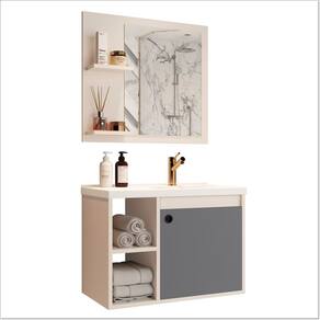 - Fabricado em MDP de 15mm, durável e resistente, projetado para suportar o uso diário; - Cuba de Resina Embutida adiciona um toque de elegância, além de ser fácil de limpar e manter. - Porta com Puxador Plástico Tipo Cava proporciona um visual limpo e moderno, além de ser fácil de abrir e fechar; - Espelho de 3mm; - Com 2 nichos superiores e 2 nichos inferiores, você terá espaço suficiente para organizar os seus itens de higiene pessoal e toalhas.