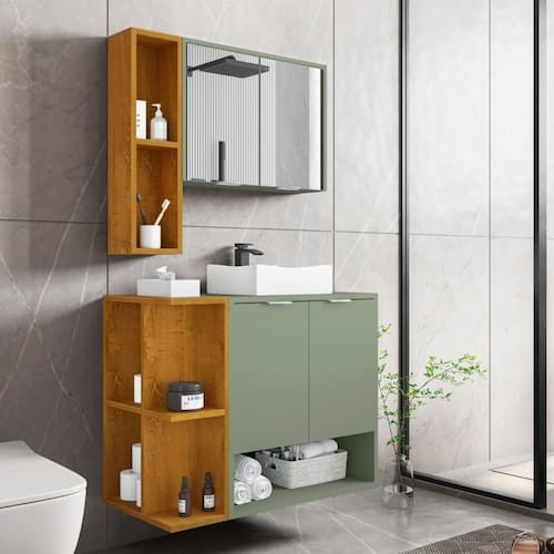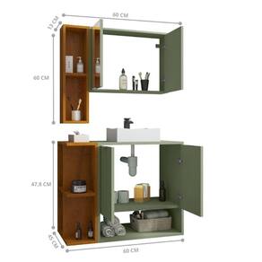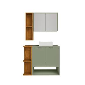 O Conjunto Para Banheiro é ideal para sua casa! Com design inovador e funcional ele possui nichos laterais que irão acomodar perfeitamente utensílios essenciais para o seu banheiro! Ele é composto por cuba de mármore sintético em formato retangular. Gabinete com amplo nicho e 2 portas. Espelheira Superior com duas portas com espelho e com amplo espaço interno e nichos laterais. Dobradiças metálicas e puxadores em alumínio anodizado.