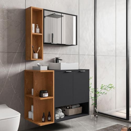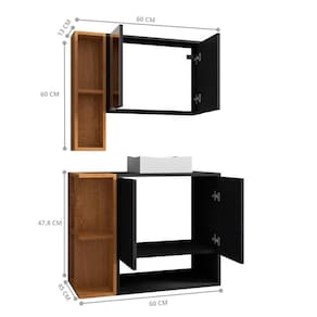 Requer montagem: Sim | Inclui manual de montagem: Sim | Quantidade de caixas de embalagem: 1 | Comprimento: 182,2 | Profundidade: 182,2 | Altura: 206,7 | Largura: 148 | LARGURA DO PRODUTO (CM): 148 | COMPRIMENTO DO PRODUTO (CM): 182,2 | MATERIAL PRINCIPAL: MDP | COR PREDOMINANTE: PRETO | ACOMPANHA CUBA: SIM | QUANTIDADE DE GAVETAS: 0 | TIPO DE GABINETE: SUSPENSO | ALTURA DO PRODUTO COM EMBALAGEM (CM): 30 | LARGURA PRODUTO COM EMBALAGEM (CM): 48 | PRODUTO PRECISA DE MONTAGEM?: Sim, a montagem é facil mas sugerimos a contratação de um montador para a montagem do produto. Não nos responsabilizamos por danos causados no ato da montagem. | COMPRIMENTO PRODUTO COM EMBALAGEM (CM): 67 | QUANTIDADES DE CAIXAS DE EMBALAGEM: 1 | INSTRUÇÕES/CUIDADOS: Limpar com flanela ou pano macio seco, não utilizar produtos abrasivos, desengordurantes, álcool ou solvente. Não expor o produto diretamente à luz solar e à umidade | CONTEÚDO DA EMBALAGEM: 1 Gabinete1 Cuba 1 Espelheira | MATERIAL PARA FILTRO: MDP | PESO PRODUTO COM EMBALAGEM (KG): 33,1 | PESO DO PRODUTO (KG): 33,1 | DESCRIÇÃO DO TAMANHO: 206,7X148X182,2 | ESTADO DE ORIGEM: SP | CORES DO PRODUTO (FILTRO DE CORES): PRETO/NATURALLE | PRODUTO: CONJUNTO BANHEIRO | ALTURA DO PRODUTO (CM): 206,7