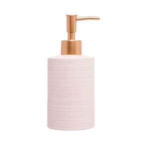 Características do produto Material: ceramica Dimensões: Dispenser: 18 a x 8 l Porta algodão: 8 l x 14 a Peso: 700g Cor: bege e rose gold Modelo: sand Marca: lyor