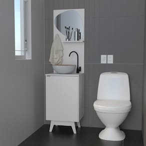 Quando falamos de banheiro pensamos em bem-estar. Pois o banheiro é onde a gente recarrega nossa energia vital, idealiza sonhos, e realiza toda a manutenção necessária para uma saúde física e mental. Conjunto Para Banheiro 45x172 BN3684 com Espelho Orgânico Bn3684. Possui 1 porta, suporte para toalha, pés em PVC Branco e 2 prateleiras. Estrutura em MDP e acabamento em pintura UV Branco. O produto não acompanha cuba e torneira. Imagem meramente ilustrativa. A decoração do ambiente não acompanha o produto. Produto, acompanha nota. O produto será entregue desmontado. Montagem da porta Reversível. Acabamento da Porta: Pintura UV Acabamento da Prateleira: Pintura UV Acompanha Cuba: Não Acompanha Gaveteiro: Não Acompanha Manual de Instalação: Sim Acompanha Parafusos Para Fixação Na Parede: Sim Acompanha Tampo: Sim Altura do Espelho: 48,4 cm Ambiente Principal: Banheiro codigo_ean: 7900288212559 Complexidade da Montagem: Média: pode ser montado por mais de uma pessoa e/ou necessite de maior conhecimento para montagem Comprimento da Prateleira: 41,9 cm Cor: Branco Cor da Porta: Branco Cor do Produto: Branco Cor Flex: Branco Cor Interna: Branco Escala de Brilho: Semi-Brilho Escala de Brilho da Porta: Semi-Brilho Escala de Brilho da Prateleira: Semi-Brilho Espessura do Espelho: 3 mm Formato do Espelho: Curvo Formato Espelheira: Irregular Furação para Cuba e Torneira: Não Informações Complementares: 03kg cada prateleira Itens Inclusos: 1 Conjunto de Banheiro, Kit Ferragem e Manual de Montagem. Largura do Espelho: 37,1 cm Linha ou Coleção: BN Manual de Montagem e Instalação: https://product-hub-prd.madeiramadeira.com.br/600140759/documents/bf6ed757-32df-4c87-ae60-dc740e760bc23134395641755094782889.pdf Marca: Tecno Mobili Material da Porta: MDP Material da Prateleira: MDP Material do Puxador da Porta: Aço Material do Tampo: MDP Material Principal: MDP Medida da Espelheira (A x L x P): 37,1x48,4 Montagem Flex: Sim. Necessita Montagem: Sim Origem do Produto: Nacional Peso: 20 kg Peso Máximo por Prateleira: 3 kg Possui Espelheira: Sim Possui Gabinete: Não Possui Gavetas: Não Possui iluminação: Não Possui Nichos: Não Possui Pés: Sim Possui Porta de Vidro: Não Possui Recorte No Tampo Para Cuba: Não Possui Recorte No Tampo Para Misturador: Não Possui Rodízio: Não Possui Sifão: Não Possui Tampo: Sim Possui Tampo de Vidro: Não Produto Montado: Sim Quantidade de Espelhos: 01 Recomendações de Uso, Manutenção e Limpeza: Para uma limpeza mais efetiva, utilizar apenas pano macio umedecido e sabão neutro. Não utilizar produtos abrasivos. Sistema de Montagem: Sim. Aconselhamos que a montagem seja feita por um profissional. Forre o chão com o próprio papelão de nossas embalagens para evitar danos e arranhões e monte o móvel deitado de costas para cima. Após montado não expor o móvel a fonte de calor ou umidade. Suporta Até (kg): 5 kg Suporte para Toalheiro: Sim Tamanho do Espelho (A x L): 37,1x48,4 Tipo de Dobradiça/Corrediça da Porta: Alumínio Tipo de Fixação do Espelho: Silicone Tipo de Porta: Abrir Tipo de Puxador da Porta: Externo