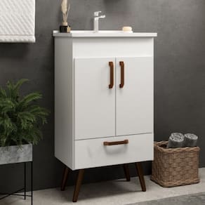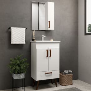 Fabricado com materiais de alta qualidade, conta com gabinete de duas portas convencionais com dobradiças resistentes e uma gaveta de corrediças metálicas que facilitam o uso. O armário com espelho e uma prateleira interna oferece ainda mais praticidade para o seu dia a dia! Para completar, o lavatório acompanha o balcão e já dispõe de furação para a instalação hidráulica. Com esse conjunto para banheiro, você terá espaço suficiente para guardar seus itens e ainda garantir um toque de sofisticação graças ao design clássico.
