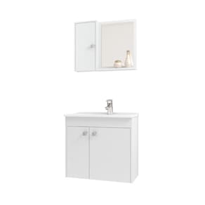 Transforme seu banheiro com o Conjunto Munique II, ideal para quem busca elegância, organização e durabilidade em um só produto. O conjunto é composto por gabinete em MDF, espelheira com espelho e lavatório com cuba integrada em mármore sintético ou PRFV, garantindo um visual moderno e sofisticado para o ambiente.