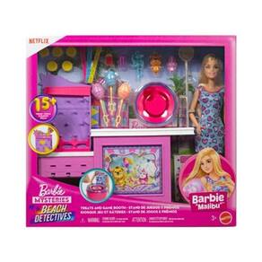 A imaginação pode criar todos os tipos de histórias à beira-mar com este conjunto da boneca Barbie Os Mistérios da Barbie: Detetives da Praia Estação de Algodão, que inclui acessórios. Inspirado na série de sucesso, este conjunto transporta os fãs para um calçadão de praia, com uma cabine de jogos e uma máquina de algodão doce. As crianças podem colocar uma ficha no jogo e ajudar a boneca Barbie Malibu a escolher um prêmio – há um porco, um tigre e uma roda de pinos – e depois se divertir com a máquina de algodão doce. A boneca Barbie 'Malibu' está vestida para se divertir ao sol com um vestido casual de estampa de coração e tênis branco. Crianças e fãs a partir de 3 anos vão adorar recriar cenas e inventar suas próprias aventuras na praia. A boneca não fica em pé sozinha.
