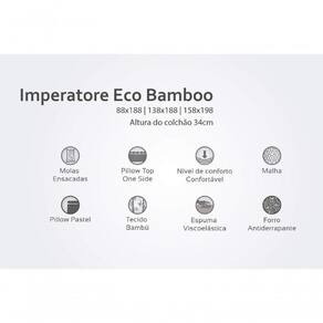 O Colchão Herval Imperatore Eco Bamboo tem Pillow Top e a beleza das linhas clássicas, aliada à tradição e tecnologia. É destinado a quem procura conforto sem abrir mão da durabilidade.