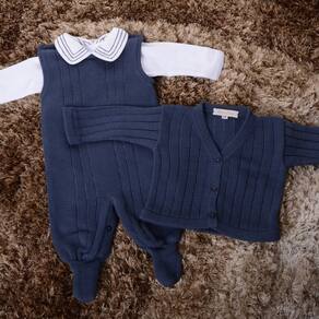 Conjunto Bebê Azul Marinho Casaco Salopete - M - Azul Marinho