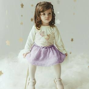 Conjunto Bebê Blusa Manga Longa Off White + Short Saia Bailarina 2Pçs Lilás - Sonho Mágico: Charme e Conforto para a sua Princesa