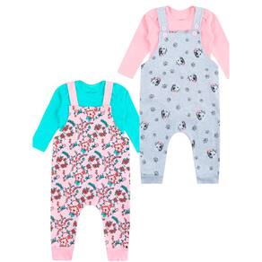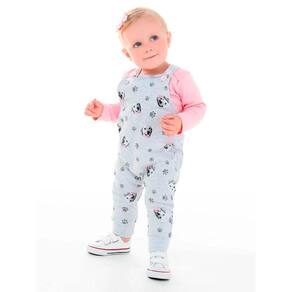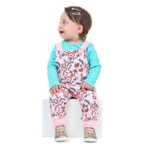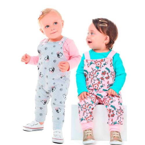 Kit com 2 jardineiras e 2 bodies Jardineira em moletom felpudo, com botões extras body manga longa em suedine Jardineira com botões extras, estampada. Moletom com parte interna felpuda Body manga longa em suedine