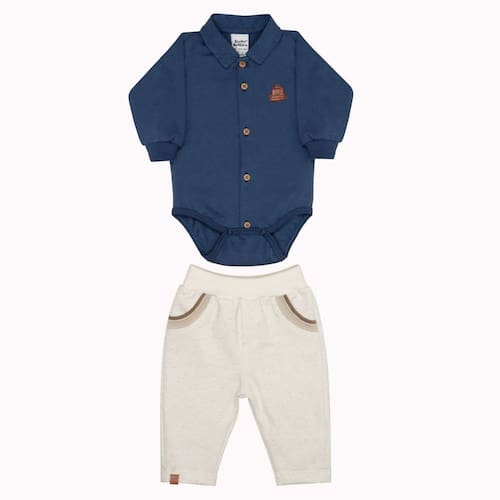 Conjunto Bebê Body longo + calça moletinho Estiloso 2Pçs Azil Marinho / Natural - Sonho Mágico: Charme e Conforto para o seu Príncipe