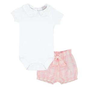 Que tal deixar o dia da sua fofura ainda mais fashionista e confortável? Com nosso conjunto xadrez sua baby irá encantar a todos por onde for, com o body confeccionado em malha canelada na cor branco, possuí aplique de pérolas na gola e o short em xadrez chiclete trás todo charme para complementar o look. Para facilitar a troca o body possuí abertura de botões entre as pernas.