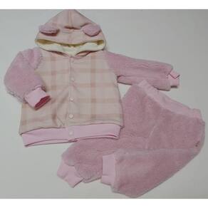 Características do Produto: - Jaqueta dupla super macia, quente e confortável. Na parte externa em tecido com estampa quadriculada que deixa a peça ainda mais encantadora. Mangas em pelo. Possui punhos e barra ribanados. Capuz com orelhinhas em alto relevo. Forrado em microsoft, que vai manter seu pequeno super protegido do frio e no maior conforto. Abertura frontal por botões de pressão. - Calça em pelo, como a manga da jaqueta, também super quentinha e confortável. Forrada em tecido super confortável. Cós elástico que facilita na vestimenta. Simplesmente um encanto.