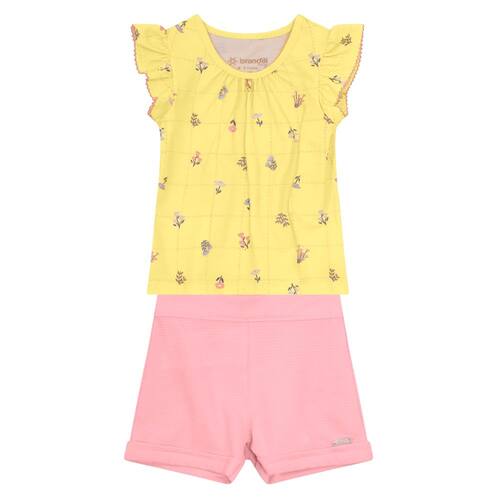 Este conjunto de bebê feminino é a escolha ideal para dias de conforto e estilo. A blusa em meia malha apresenta uma estampa delicada de flores e folhas com um detalhe quadriculado amplo, além de mangas curtas com recorte de pregas e decote redondo franzido. O shorts em malha cloud de cor lisa completa o look com suavidade e conforto. Perfeito para deixar as pequenas ainda mais encantadoras e confortáveis!