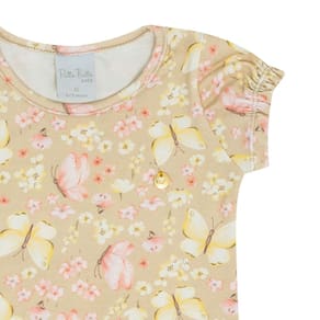 Conjunto fresquinho e charmoso para os momentos de aventura e brincadeiras! O conjunto em cotton leve possuí o body na cor digital areia com estampado digital de borboletas e flores, acompanha um short na cor pêssego com elastano na cintura e nas perninhas, a fofura se completa com o short na parte das costas possuir aplique bordado de borboleta. Uma gracinha para se divertir com a dinda!