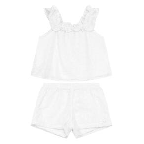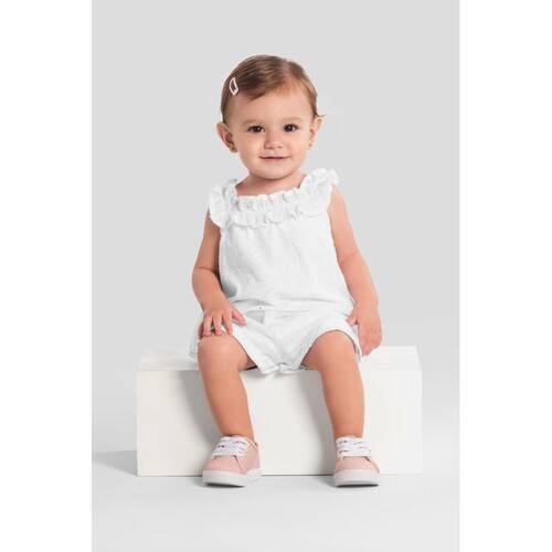 Encante-se com o conjunto bebê menina da Mundi, feito em Laise Heart com bordados em formato de coração. A blusa possui forro, mangas curtas e gola quadrada com babado, garantindo um toque especial. O shorts em cor lisa tem cós elástico, proporcionando conforto e liberdade de movimento. Ideal para os dias quentes, esse look é perfeito para passeios e brincadeiras. Vista sua pequena com estilo e delicadeza, valorizando cada momento.