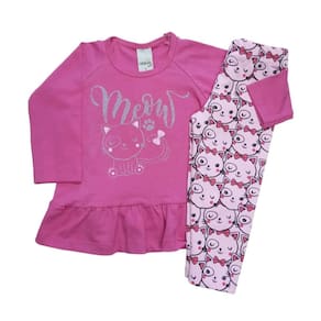 Conjunto Bebê Menina Longo com Legging Gatos Pink - Ralakids - Rosa - GG