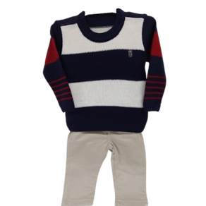 Conjunto Bebê Menino Blusa Trico + Calça Sarja Paraiso