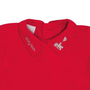 Um momento especial, merece um look especial para o bebê! Conjunto composto por uma jardineira em tecido eco na cor cinza com etiqueta termocolante próximo a perninha e detalhe de quatro botões na parte frontal do peito deixando o look charmoso e fashionista. Acompanha uma camiseta meia malha na cor vermelhoe gola polo com bordado. Uma fofura! *Sugestão Look Natal