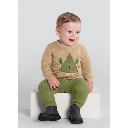 Transforme o dia a dia do seu pequeno com o encantador conjunto bebê da Brandili Baby! Confeccionado em moletinho confortável, esse conjunto é perfeito para as aventuras cotidianas. O blusão apresenta um divertido aplique interativo de cachorrinho, que certamente vai conquistar os corações, enquanto a calça de cor lisa garante liberdade de movimento. Ideal para garantir o conforto e estilo do seu menino, ele é perfeito para compor ou para momentos de lazer. Combine com tênis e uma camiseta básica para um visual despojado que vai deixar o seu pequeno pronto para qualquer aventura!