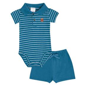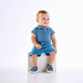 Conjunto baby charmoso e perfeito para acompanhar o dia a dia dos pequenos. Com o body confeccionado em suedine fio tinto listrado na cor azul cobalto, possuí gola polo e aplique termocolante frontal com identificação pulla bulla e botões de abertura na gola e entre as pernas. Já a bermuda piqueton na cor azul cobalto possuí elastano na cintura para faciliar a segurança e a movimentação do baby.