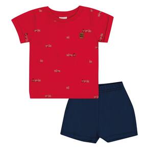 Conjunto fofinho e ideal para um passeio ao parquinho com a mamãe! O conjunto conta com a camiseta em meia malha na cor vermelha estampado de carrinhos e aplique termocolante com idenfiticação Pulla Bulla próximo ao peito. Já a bermuda em moletinho possui elastano na cintura para maior segurança, conforto e mobilidade na cor marinho.