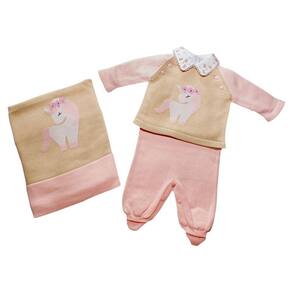 Conjunto Bebê em Tricô Casaco Salopete e Manta