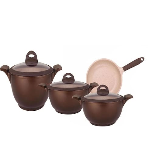 Conjunto belga 4 peças resestimento cerâmico mta indução mariamarias conjunto de panelas belga 4 peças revestimento cerâmico mta características material alumínio com revestimento cerâmico 5mm revestimento interno cerâmico marmorizado greblon c3+ revestimento externo com acabamentos em silicone tampa de vidro temperado com anel de silicone e furo para saída do vapor alças com proteção de silicone removíveis pegador de baquelite oferece segurança ao manuseio produto livre de cinza, cádmio e pfoa tipos de uso: gás elétrico vitro cerâmico indução lava louça medidas caçarola n20 altura sem tampa 10cm altura com tampa 14cm comprimento 30cm diâmetro boca 20cm diâmetro fundo 14cm litragem 2,4 litros medidas caçarola n24 altura sem tampa 12,5cm altura com tampa 17cm comprimento 36cm diâmetro boca 24cm diâmetro fundo 17cm litragem 4,3 litros medidas frigideira n24 altura 5,5cm comprimento 45,5cm diâmetro boca 24cm diâmetro fundo 19cm litragem 1,7 litros medidas caçarola n28 altura sem tampa 14 cm altura com tampa 20 cm comprimento 41 cm diâmetro boca 28 cm diâmetro fundo 19 cm litragem 6,2 litros conteúdo do conjunto: 01- frigideira 24cm 1,7 litros 01- caçarola 20cm 2,4 litros 01- caçarola 24cm 4,3 litros 01- caçarola 28cm 6,2 litros
