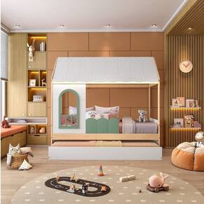 Informações Complementares: 1 Cama Montessoriana, 1 Cama auxiliar, 1 Kit Telhado com Led, 1 Janela com grade de proteção, Kit Ferragens e Manual de Montagem