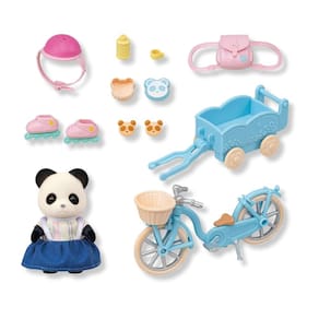 O Conjunto Bicicleta e Patim - Menina Panda contém um boneco e acessórios para curtir brincadeiras ao ar livre, com a menina Pookie Panda Rosalina em uma roupa exclusiva, bicicleta e patins.