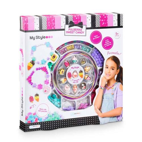 Conjunto Bijuterias Infantil - My Style - Pulseiras Sweet Candy - Multikids: Pulseiras My Style Sweet Candy Multikids, você pode criar pulseiras incríveis para incrementar o seu look e ficar mais estilosa ainda. Deixe sua imaginação fluir e monte conforme o seu gosto e estilo, a criação e o resultado final dependem de você. Com muitos acessórios e itens você pode juntar com suas amigas e fazer a pulseira da amizade ou apenas combinar as pulseiras. É muita diversão enquanto você monta sua pulseira. Você na moda, sempre estilosa e bonita! São mais de 160 peças. Fácil de fazer e personalizar INFORMAÇÕES: • Produto: My Style Sweet Candy • Marca: Multikids • Coleção: My Style • Tipo: Conjunto de Pulseiras e Colares para brincar • Estilo de brincar: DIY (Faça você mesmo) • Conteúdo: 01 Kit De Pulseiras com Miçangas e Pingentes com mais de 160 peças • Recomendação: para crianças a partir de 5 anos de idade ESPECIFICAÇÕES: • Referência: BR1118 • Código de Barras: 7899838866512 • Embalagem (C x A x L): 30.5 x 31.5 x 4.3 cm • Embalagem (Peso): 0.275 kg • Material / Composição: Plástico • Registro: CE-BRI/BRICS 00706-18 • Certificado: Órgãos Autorizados - OCP´S (Organismos de Certificação de Produtos) BENEFÍCIOS DE BRINCAR: - Eleva a autoestima - Exercita a memória - Estimula o raciocínio - Exercita o imaginário - Desenvolve a criatividade - Desenvolve percepção visual - Desperta a atenção e curiosidade - Desenvolvimento neuropsicológico - Estimula habilidades motoras básicas - Incentiva a comunicação e linguagem - Desenvolve aspectos emocionais e afetivo - Estimula o reconhecimento de formas e cores AVISO: - As imagens são meramente ilustrativas - Os tamanhos e medidas são aproximados - As cores e estampas dos produtos podem ter variações - As informações são de responsabilidade do fabricante ou fornecedor