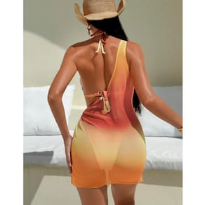 VERIFIQUE AS INFORMAÇÕES REFERENTES ÀS MEDIDAS DO PRODUTO/CORPO NESTE ANÚNCIO. ITENS DE ROUPA ÍNTIMA, LINGERIE E DE BANHO NÃO SÃO PASSÍVEIS DE TROCA/DEVOLUÇÃO. Conjunto de três Peças de Biquini Feminino Ofélia com Top Halter Decorado com Cor Degradê com Calcinha Triângulo e Saída de Praia Assimétrica. Características: Costas nuas Top halter curto Calcinha Triângulo cintura baixa Saída de Praia assimétrica Cor Degradê laranja Alças finas Saída de Praia – 95% poliéster e 5% elastano Bojo com preenchimento removível Biquini e Top com alta elasticidade – 82% poliéster e 18% elastano Música – Sina de Ofélia