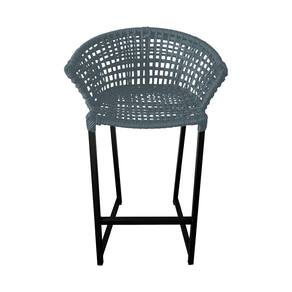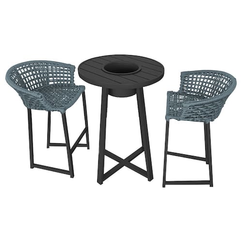 Conjunto Bistrô Champanheira Tampo Ripado e 2 Banquetas Reis Corda Náutica Cinza