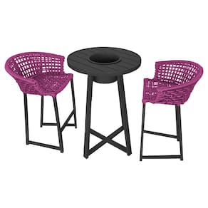 Características Tipo: Conjunto Modelo: Mesa Bistrô Champanheira Cor: Preto Modelo: Banqueta Reis Cor base: Preto Cor corda: Rosa