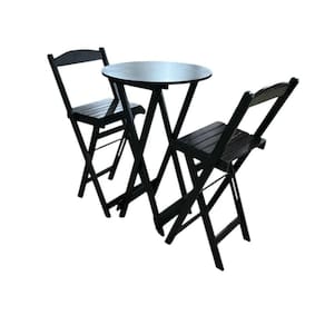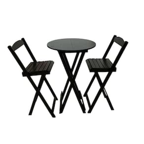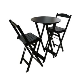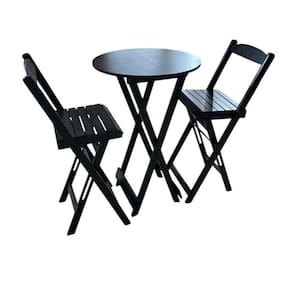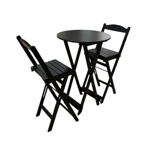 Conjunto Bistrô Dobrável em Madeira – 3 Peças Preto -