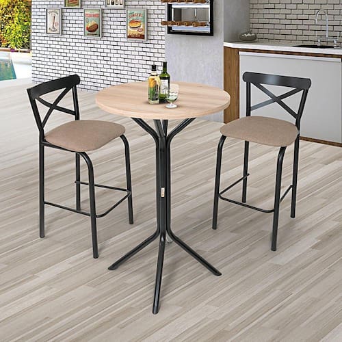 Conjunto Bistrô Tampo 0,65m Redondo com 2 Banquetas Tubo Paris Preto/Bege