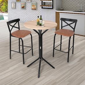 Suas duas Banquetas fixas possuem assento estofado e sistema de fixação com porca garras, que proporcionam maior conforto e comodidade. Além disso suas ponteiras de proteção interna nos pés, que garante maior proteção contra riscos e ferrugem. Medida da Mesa (A x L x P): 103,5x65x65cm Peso da Mesa: 9,64 kg Mesa suporta até: 10 kg Acabamento da Cadeira/Banco: Pintura Epóxi Acabamento da Mesa: Pintura Epóxi Acompanha Manual de Instalação: Sim Altura do Conjunto: 103,5 cm Ambiente Principal: Cozinha Cadeira/Banco estofada: Somente Assento Estofado Cadeira/Banco suporta até: 100 kg Complexidade da Montagem: Baixa: pode ser montado por uma pessoa sozinha Cor: Preto fosco / Caramelo Cor do Produto: Preto fosco / Caramelo Cor Secundária: Preto De Canto (Canto Alemão): Não Design da Base: Em X Escala de Brilho: Fosco Espessura do Tampo: 30 mm Estrutura do Assento: Pinus Compensado/Espuma Estrutura do Encosto: Aço Formato do Tampo: Redondo Informações Complementares: Banqueta Fixa Itens Inclusos: 1 Mesa, 2 Banquetas, Kit Ferragens e Manual de Montagem Linha ou Coleção: Paris Manual de Montagem e Instalação: https://product-hub-prd.madeiramadeira.com.br/910597/documents/a3153878-ddb1-467b-baba-5cb5109640ee61523391banquetabasebistro.pdf Material da Base da Mesa: Aço Carbono Material da Estrutura da Cadeira: Aço Carbono Material do Tampo: BP Material Principal: Aço Carbono Material Principal das Cadeiras/Bancos: Aço Carbono Medida da Base (A x L x P): 100,5x65x65cm Medida da Cadeira/Banco (A x L x P): 99x44x47cm Medida do Canto Alemão (A x L x P): Não possui Medida do Tampo (L x C x E): 65x65x3cm Mesa Dobrável: Não Mesa Extensível: Não Montagem Flex: Não Necessita Montagem: Sim Origem do Produto: Nacional Peso da Cadeira/Banco: 4,73 kg Possui Apoio para Braços: Não Possui Apoio Para os Pés: Sim Possui Prateleiras: Não Possui Suporte Giratório: Não Possui Vidro: Sim Quantidade de Cadeiras: 2 Quantidade de Lugares: 02 Recomendações de Uso, Manutenção e Limpeza: Limpar com pano levemente umedecido. Não usar produtos abrasivos que possam danificar a superfície do móvel. Sistema de Montagem: Parafusos Tipo de Assento: Fixo Tipo de Encosto: Fixo