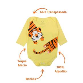 Apresentamos o Conjunto Body Bebê Longo Algodão Amarelo Estampado Menina.