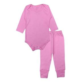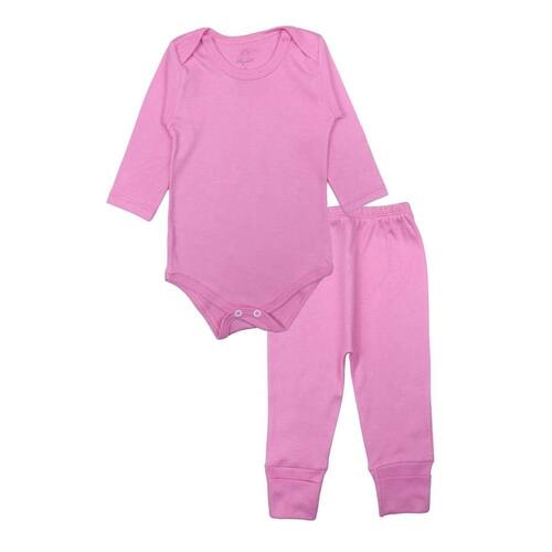 Conjunto Body Bebê Longo Algodão Rosa Escuro Liso Menina - Conjunto Body Bebê: Maciez e Estilo em Rosa Escuro para Meninas