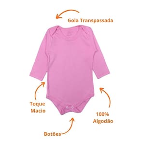 Conjunto Body Bebê Longo Algodão Rosa Escuro Liso Menina é composto por duas peças: