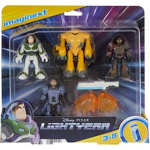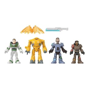 As crianças podem criar missões cheias de ação com este pacote Imaginext de 4 personagens do filme da Disney Pixar Lightyear O conjunto de personagens inclui Buzz Lightyear Space Ranger Alpha e Zap Junior Soldiers Izzy Hawthorne e Mo Morrison, além de Zyclops e 2 acessórios Braços e pernas da figura de ação se movem para um jogo mais realista Procure outros personagens Imaginext, veículos e playsets com personagens Lightyear para um jogo ainda mais aventureiro Cada um vendido separadamente, sujeito a disponibilidade. AVISO: Imagens Meramente Ilustrativas e Tons de Cores Podem Variar da Imagem Material: Plástico Idade Mínima Recomendada: 3+ Anos Altura Aprox Dos Personagens: 8cm Contém: 4 Personagens e Acessórios Linha: Lightyear Disney Pixar Ref: HGT27 Produto Mattel Marca: Não Informado
